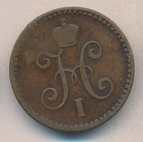 Лицевая сторона — вензель Николая I в бусовом ободке, оборотная — надпись «1 КОПЕЙКА СЕРЕБРОМ» и дата. Нормативный вес — 10,24 грамма, гурт гладкий.