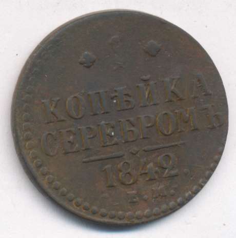 Лицевая сторона — вензель Николая I в бусовом ободке, оборотная — надпись «1 КОПЕЙКА СЕРЕБРОМ» и дата. Нормативный вес — 10,24 грамма, гурт гладкий.