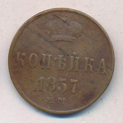 Лицевая сторона — вензель Николая I, оборотная — обозначение номинала (копейка) и дата. Нормативный вес — 5,12 грамма, гурт гладкий.