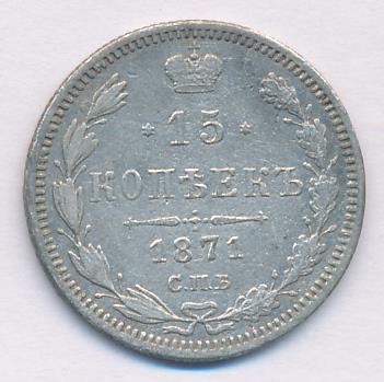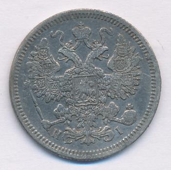 Лицевая сторона — гербовый орел, оборотная —обозначение номинала (15 копеекъ), окруженное венком из лавровой и дубовой ветвей и дата.