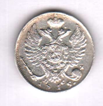 Лицевая сторона - двуглавый орел и дата, оборотная — обозначение номинала (10 копеекъ) в венке из лавровой и дубовой ветвей. Проба до 1813 года — 750, нормативный вес — 2,40 грамма; после 1813 года — проба 868, нормативный вес — 2,07 грамма.