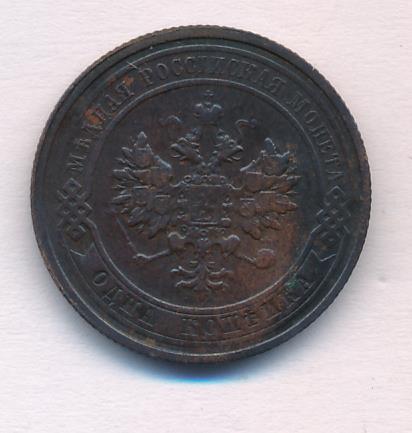 Лицевая сторона — двуглавый орел, надпись МЕДНАЯ РОССIЙСКАЯ МОНЕТА и обозначение номинала (одна копейка); оборотная — обозначение номинала (1 копейка) в бусовом ободке и дата. Нормативный вес — 3,28 грамма, гурт рубчатый.