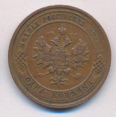 Лицевая сторона — двуглавый орел, надпись МЕДНАЯ РОССIЙСКАЯ МОНЕТА и обозначение номинала (одна копейка); оборотная — обозначение номинала (1 копейка) в бусовом ободке и дата. Нормативный вес — 3,28 грамма, гурт рубчатый.