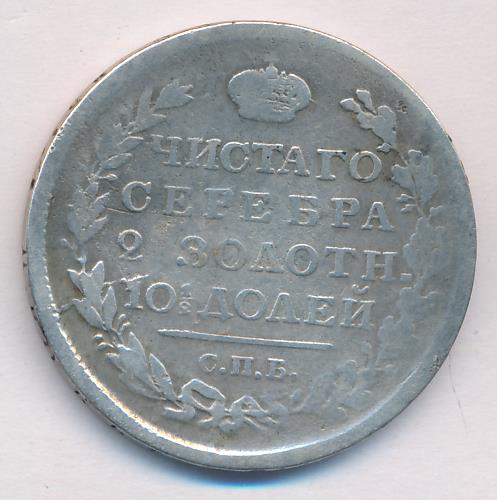 Лицевая сторона - двуглавый орел, дата и надпись «МОНЕТА РУБЛЬ», оборотная — окруженная венком из лавровой и дубовой ветвей надпись «ЧИСТАГО СЕРЕБРА 2 ЗОЛОТН 10 ДОЛЕЙ». Проба — 868, нормативный вес — 10,37 грамма.
