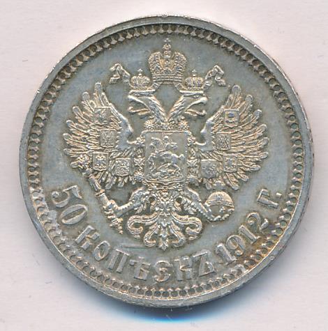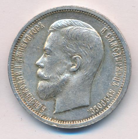 Лицевая сторона — портрет Николая II в круговой надписи «Б.М. НИКОЛАЙ II ИМПЕРАТОРЪ И САМОДЕРЖЕЦЪ ВСЕРОСС», оборотная — двуглавый орел, обозначение номинала (50 копеекъ) и дата.