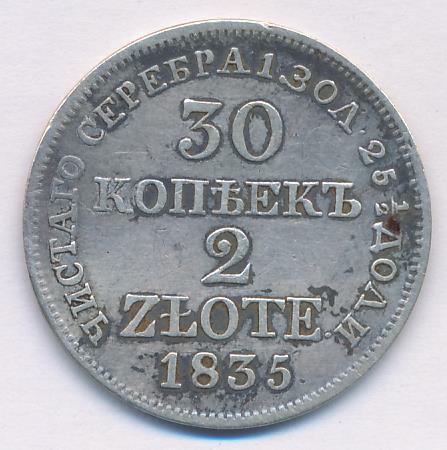 30 копеек — 2 злотых 1834-1841 годов