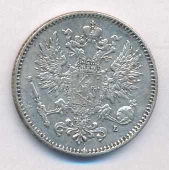 Лицевая сторона — российский двуглавый орел с гербом Великого княжества Финляндского на груди, оборотная — номинал и дата в венке из дубовых листьев. Проба — 750, нормативный вес — 2,55 грамма, гурт рубчатый.