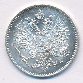 Лицевая сторона — российский двуглавый орел с гербом Великого княжества Финляндского на груди, оборотная — номинал и дата в венке из дубовых листьев. Проба — 750, нормативный вес — 1,27 грамма, гурт рубчатый.