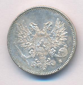 Лицевая сторона — российский двуглавый орел с гербом Великого княжества Финляндского на груди, оборотная — номинал и дата в венке из дубовых листьев. Проба — 750, нормативный вес — 1,27 грамма, гурт рубчатый.