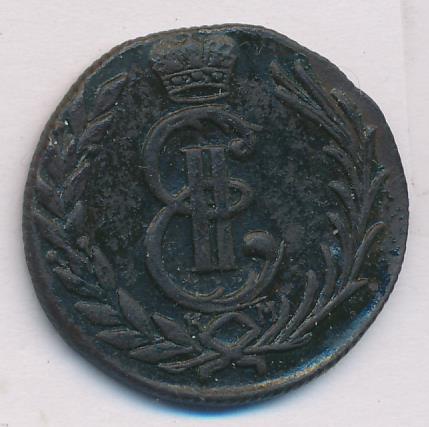 Лицевая сторона - два соболя поддерживают щит с обозначением номинала (копейка) под короной, надпись «СИБИРСКАЯ МОНЕТА». Оборотная — вензель Екатерины II в венке из пальмовой и лавровой ветвей. Гурт — шнур, вес — 6,55 грамма.