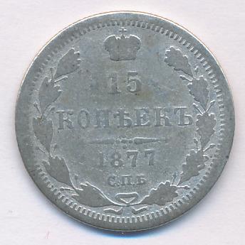 Лицевая сторона — гербовый орел, оборотная —обозначение номинала (15 копеекъ), окруженное венком из лавровой и дубовой ветвей и дата.