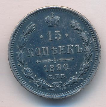 Лицевая сторона — гербовый орел, оборотная —обозначение номинала (15 копеекъ), окруженное венком из лавровой и дубовой ветвей и дата.