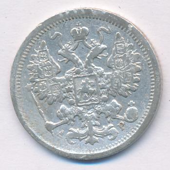 Лицевая сторона — гербовый орел, оборотная —обозначение номинала (15 копеекъ), окруженное венком из лавровой и дубовой ветвей и дата.