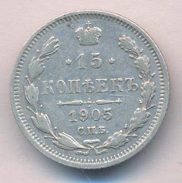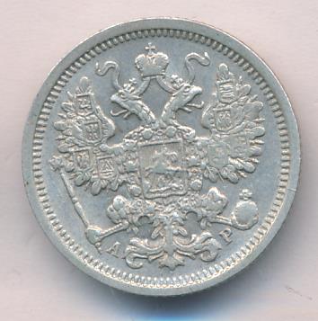 Лицевая сторона — гербовый орел, оборотная —обозначение номинала (15 копеекъ), окруженное венком из лавровой и дубовой ветвей и дата.