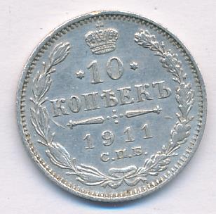 Лицевая сторона — гербовый орел, оборотная —обозначение номинала (10 копеекъ), окруженное венком из лавровой и дубовой ветвей и дата.