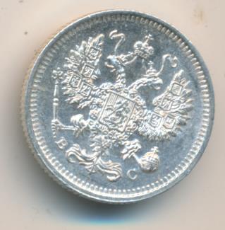 Лицевая сторона — гербовый орел, оборотная —обозначение номинала (10 копеекъ), окруженное венком из лавровой и дубовой ветвей и дата.