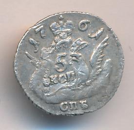 Для сокращения разрыва между копеечным номиналом и гривенником указом Сената от 25 мая 1755 года в обращение вводятся пятаки той же 77/96 пробы и стопы в 16 рублей 94 копейки их фунта, которая была установлена для гривенников указом от 22 марта 1746 года.