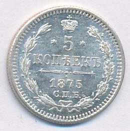 Лицевая сторона — гербовый орел, оборотная —обозначение номинала (5 копеекъ), окруженное венком из лавровой и дубовой ветвей и дата.