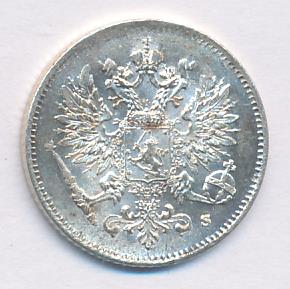 Лицевая сторона — российский двуглавый орел с гербом Великого княжества Финляндского на груди, оборотная — номинал и дата в венке из дубовых листьев. Проба — 750, нормативный вес — 1,27 грамма, гурт рубчатый.