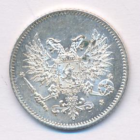 Лицевая сторона — российский двуглавый орел с гербом Великого княжества Финляндского на груди, оборотная — номинал и дата в венке из дубовых листьев. Проба — 750, нормативный вес — 1,27 грамма, гурт рубчатый.