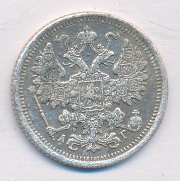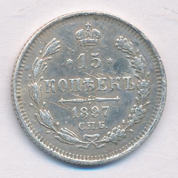 Лицевая сторона — гербовый орел, оборотная —обозначение номинала (15 копеекъ), окруженное венком из лавровой и дубовой ветвей и дата.