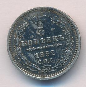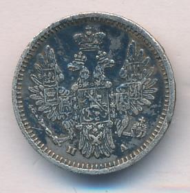 Лицевая сторона — новый гербовый орел с поднятыми крыльями, оборотная —обозначение номинала (5 копеекъ), окруженное венком из лавровой и дубовой ветвей и дата. Проба — 868, нормативный вес — 1,04 грамма.