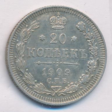 Лицевая сторона — гербовый орел, оборотная —обозначение номинала (20 копеекъ), окруженное венком из лавровой и дубовой ветвей и дата.