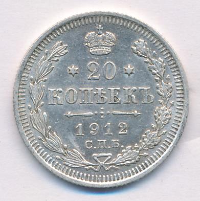 Лицевая сторона — гербовый орел, оборотная —обозначение номинала (20 копеекъ), окруженное венком из лавровой и дубовой ветвей и дата.