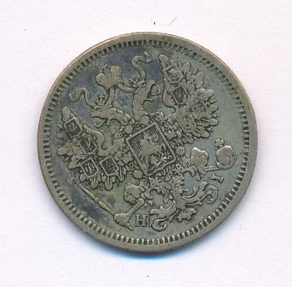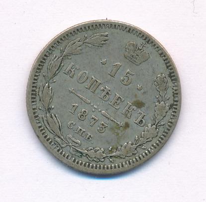 Лицевая сторона — гербовый орел, оборотная —обозначение номинала (15 копеекъ), окруженное венком из лавровой и дубовой ветвей и дата.