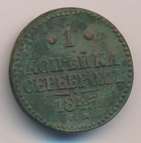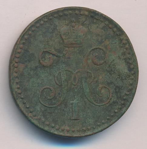 Лицевая сторона — вензель Николая I в бусовом ободке, оборотная — надпись «1 КОПЕЙКА СЕРЕБРОМ» и дата. Нормативный вес — 10,24 грамма, гурт гладкий.