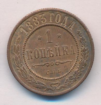Лицевая сторона — двуглавый орел, надпись МЕДНАЯ РОССIЙСКАЯ МОНЕТА и обозначение номинала (одна копейка); оборотная — обозначение номинала (1 копейка) в бусовом ободке и дата. Нормативный вес — 3,28 грамма, гурт рубчатый.