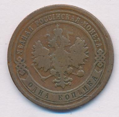 Лицевая сторона — двуглавый орел, надпись МЕДНАЯ РОССIЙСКАЯ МОНЕТА и обозначение номинала (одна копейка); оборотная — обозначение номинала (1 копейка) в бусовом ободке и дата. Нормативный вес — 3,28 грамма, гурт рубчатый.