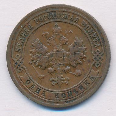 Лицевая сторона — двуглавый орел, надпись МЕДНАЯ РОССIЙСКАЯ МОНЕТА и обозначение номинала (одна копейка); оборотная — обозначение номинала (1 копейка) в бусовом ободке и дата. Нормативный вес — 3,28 грамма, гурт рубчатый.