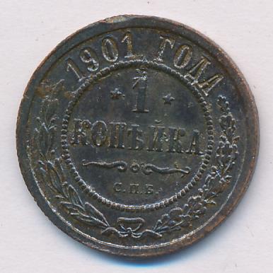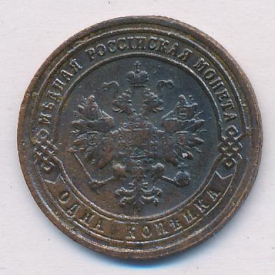 Лицевая сторона — двуглавый орел, надпись МЕДНАЯ РОССIЙСКАЯ МОНЕТА и обозначение номинала (одна копейка); оборотная — обозначение номинала (1 копейка) в бусовом ободке и дата. Нормативный вес — 3,28 грамма, гурт рубчатый.
