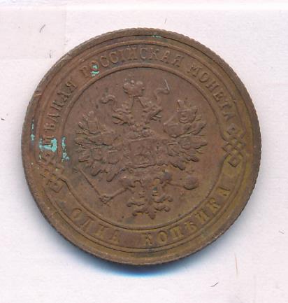 Лицевая сторона — двуглавый орел, надпись МЕДНАЯ РОССIЙСКАЯ МОНЕТА и обозначение номинала (одна копейка); оборотная — обозначение номинала (1 копейка) в бусовом ободке и дата. Нормативный вес — 3,28 грамма, гурт рубчатый.