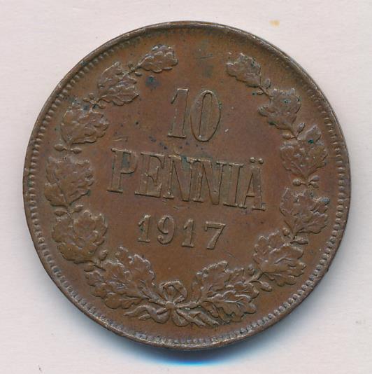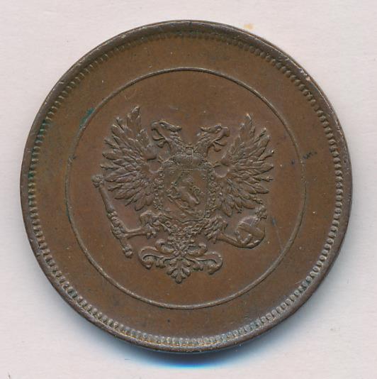 Лицевая сторона — вензель Александра II, оборотная — номинал (10 PENNIA) в венке из дубовых ветвей и дата. Нормативный вес — 12,80 грамма, гурт гладкий.