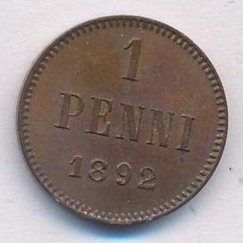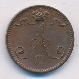 Лицевая сторона — вензель Александра II, оборотная — номинал (1 PENNIA) и дата. Нормативный вес — 1,28 грамма, гурт гладкий.