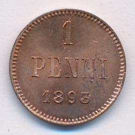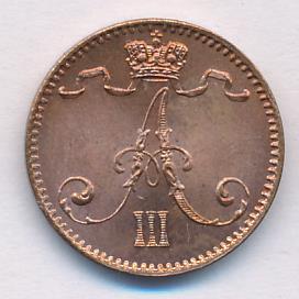 Лицевая сторона — вензель Александра II, оборотная — номинал (1 PENNIA) и дата. Нормативный вес — 1,28 грамма, гурт гладкий.