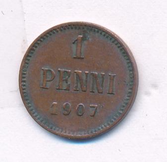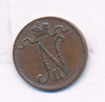 Лицевая сторона — вензель Александра II, оборотная — номинал (1 PENNIA) и дата. Нормативный вес — 1,28 грамма, гурт гладкий.