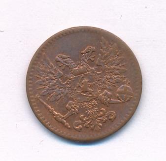 Лицевая сторона — вензель Александра II, оборотная — номинал (1 PENNIA) и дата. Нормативный вес — 1,28 грамма, гурт гладкий.