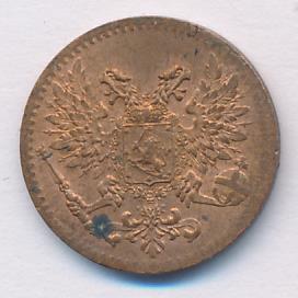 Лицевая сторона — вензель Александра II, оборотная — номинал (1 PENNIA) и дата. Нормативный вес — 1,28 грамма, гурт гладкий.