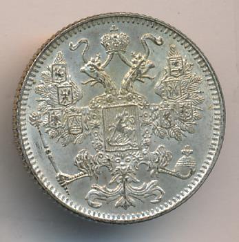 Лицевая сторона — гербовый орел, оборотная —обозначение номинала (15 копеекъ), окруженное венком из лавровой и дубовой ветвей и дата.