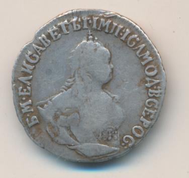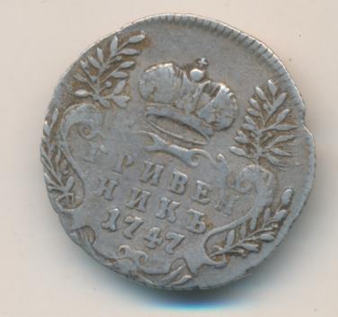 Лицевая сторона — портрет и надпись «Б М Елисаветъ I IMP I САМОД ВСЕРОС», оборотная — обозначение номинала (гривенникъ) и дата. Проба — 750 (с 1746 года - 802), нормативный вес — 2,59 грамма (с 1755 года — 2,42). Гурт — шнур.