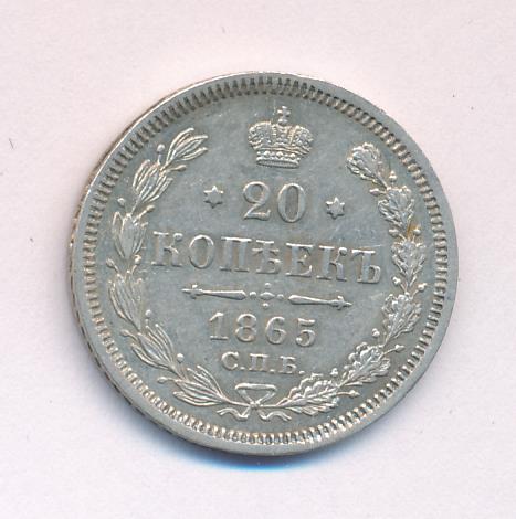 Лицевая сторона — гербовый орел, оборотная —обозначение номинала (20 копеекъ), окруженное венком из лавровой и дубовой ветвей и дата.