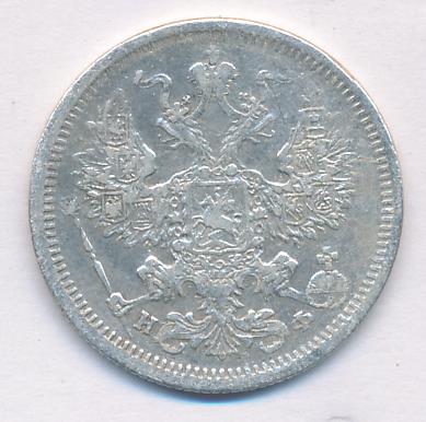 Лицевая сторона — гербовый орел, оборотная —обозначение номинала (20 копеекъ), окруженное венком из лавровой и дубовой ветвей и дата.