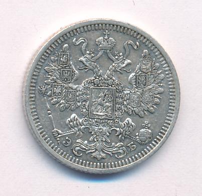 Лицевая сторона — гербовый орел, оборотная —обозначение номинала (15 копеекъ), окруженное венком из лавровой и дубовой ветвей и дата.