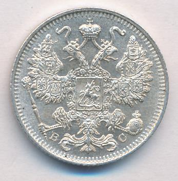 Лицевая сторона — гербовый орел, оборотная —обозначение номинала (15 копеекъ), окруженное венком из лавровой и дубовой ветвей и дата.