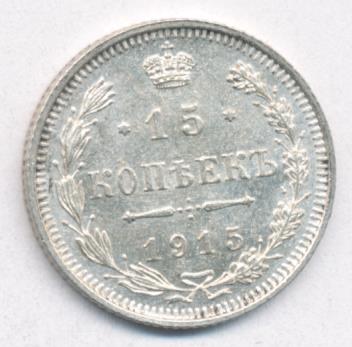 Лицевая сторона — гербовый орел, оборотная —обозначение номинала (15 копеекъ), окруженное венком из лавровой и дубовой ветвей и дата.