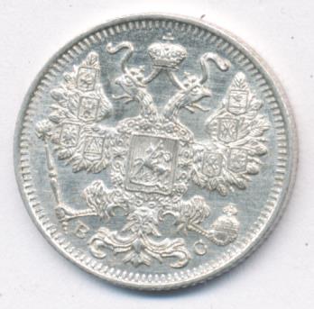 Лицевая сторона — гербовый орел, оборотная —обозначение номинала (15 копеекъ), окруженное венком из лавровой и дубовой ветвей и дата.