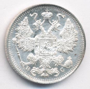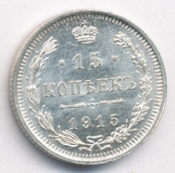 Лицевая сторона — гербовый орел, оборотная —обозначение номинала (15 копеекъ), окруженное венком из лавровой и дубовой ветвей и дата.